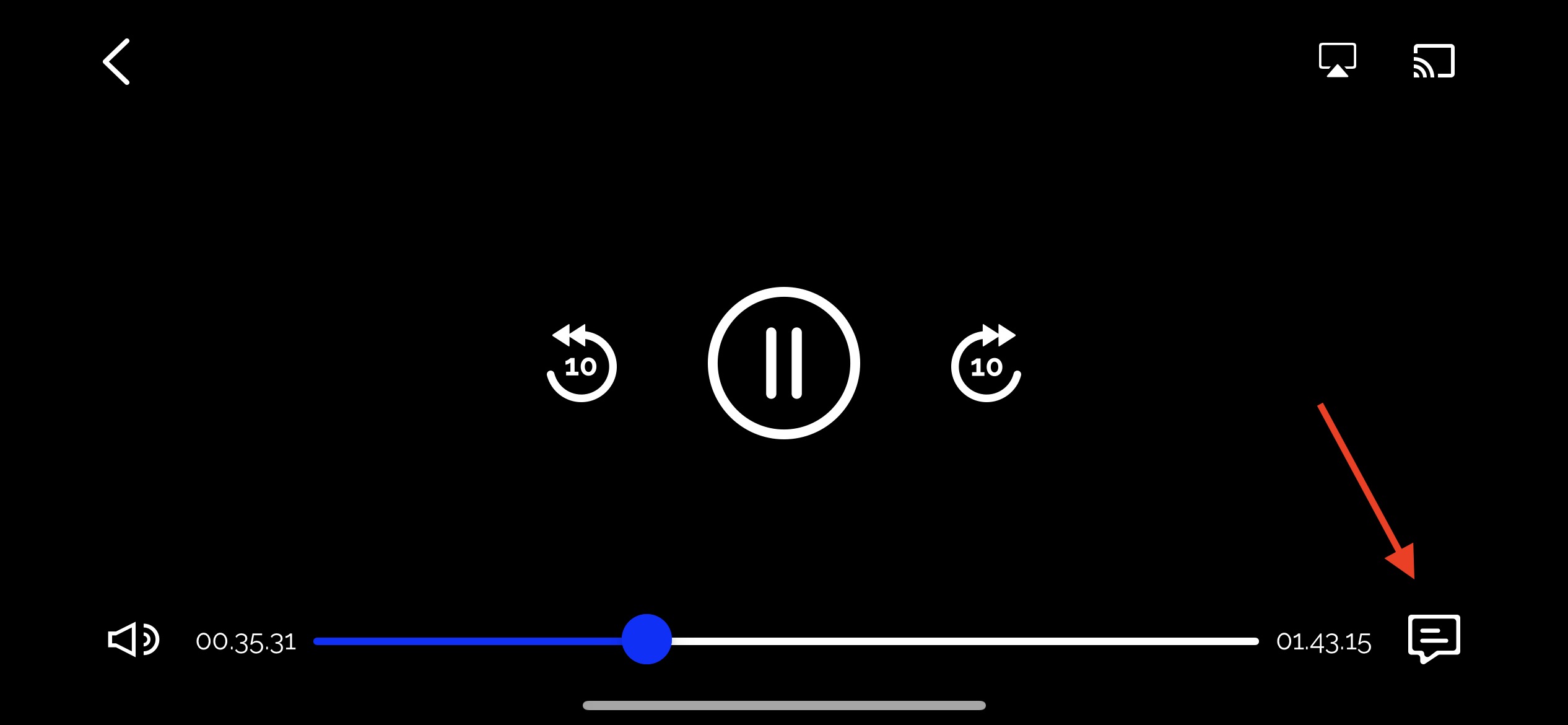 Jos toistat Chromecastin kautta, kuva näyttää hieman erilaiselta, mutta sinun tulee silti etsiä sama puhekupla.